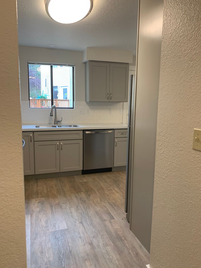 Introducing the fully renovated Halo Townhome in Renton, WA. This 2-bedroom, 1.5-bathroom townhouse boasts an abundance of natural light, creating a bright and inviting living space. The luxury vinyl plank flooring adds a touch of elegance, while the covered parking space provides convenience and peace of mind. Situated in an up-and-coming neighborhood, this townhome is less than 5 minutes away from I-405, making commuting a breeze. Enjoy quick access to popular destinations such as The Landing, Lake Washington and Top Golf, both just a 5-minute drive away. Step outside onto your private deck and take in the surrounding views. With secure access to the building, you can feel safe and secure in your new home at the Halo Townhomes.